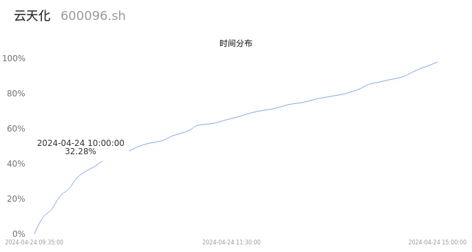600096云天化2024年04月24日成交28.55万手,成交金额5.72亿元,相较昨日缩量14.11万手,换手率1.56%,成交清淡。