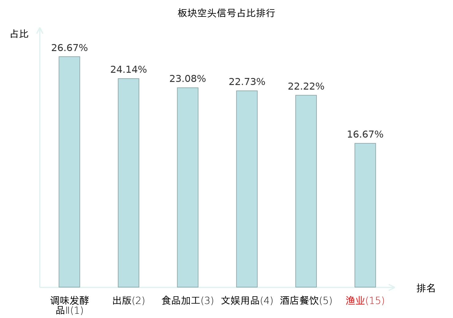 全市场所有行业板块中主力空头信号占比排名中,调味发酵品Ⅱ板块位居第一。中药Ⅱ板块名次提升最快,较昨日上升110位。