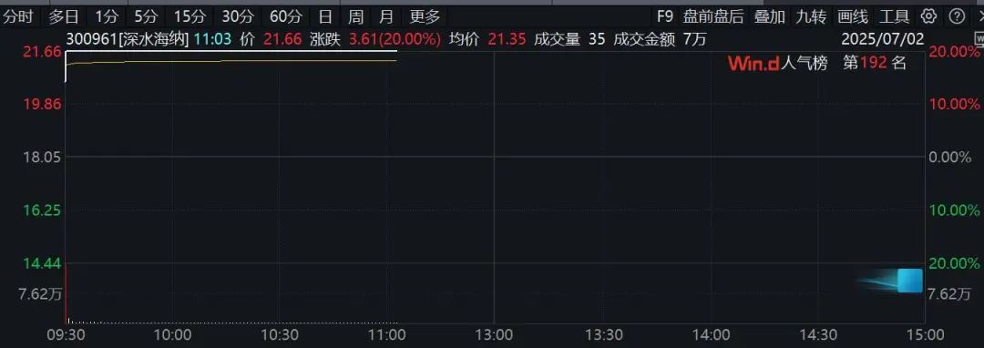 海洋经济概念集体爆发,多股直线拉升涨停,其中深水海纳高开后秒速20%封板。港股领航医药生物科技大幅高开高走,一度直线飙涨超200%。