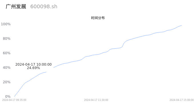 600098广州发展2024年04月17日成交29.61万手,成交金额1.97亿元,相较昨日缩量3.59万手,换手率0.85%,成交清淡。