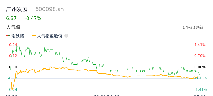 04月30日,广州发展收报6.37,股价涨幅-0.47%,成交金额1.76亿元,换手率0.78%。