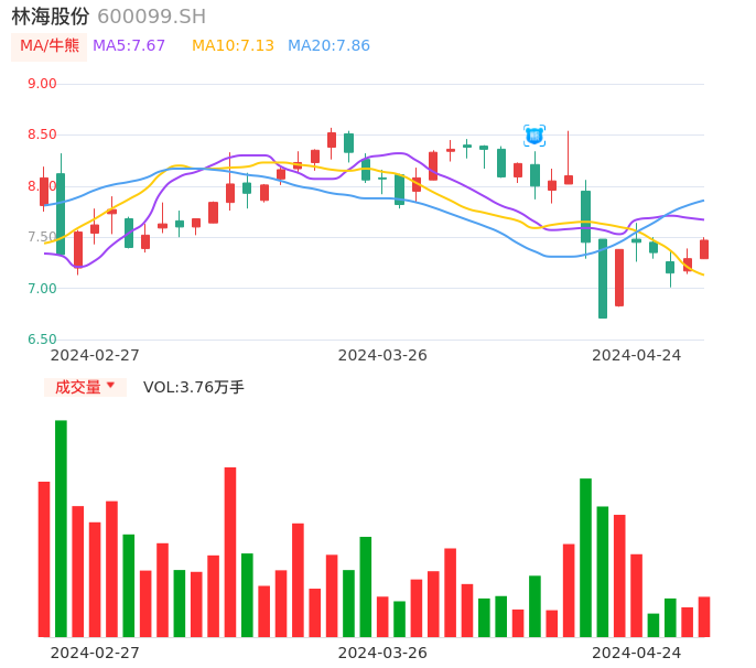 04月24日,林海股份收报7.47,股价涨幅2.47%,成交金额2795.63万元,换手率1.72%。