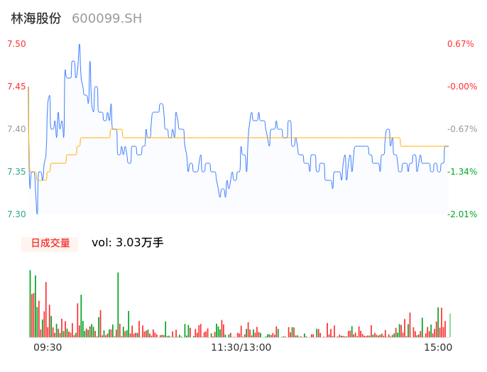 04月19日,林海股份收报7.35,股价涨幅-1.34%,成交金额2234.56万元,换手率1.38%。