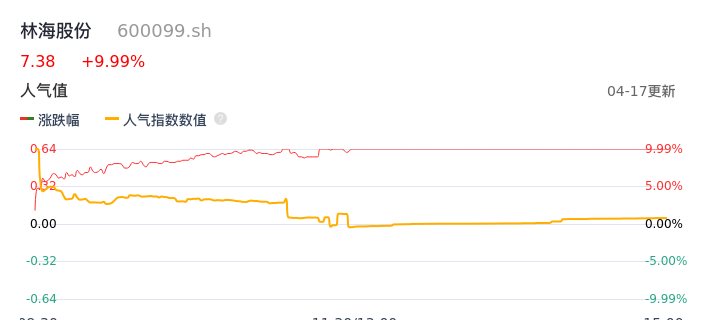 04月17日,林海股份收报7.38,股价涨幅9.99%,成交金额5327.03万元,换手率3.35%。