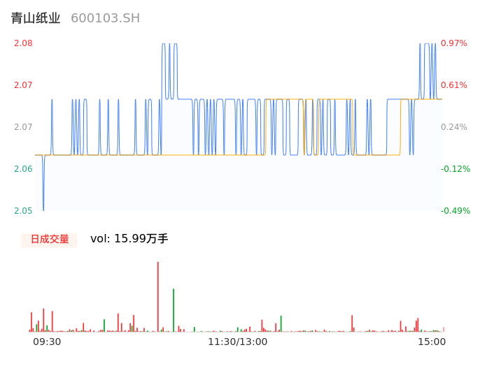 04月24日,青山纸业收报2.07,股价涨幅0.49%,成交金额3302.43万元,换手率0.69%。