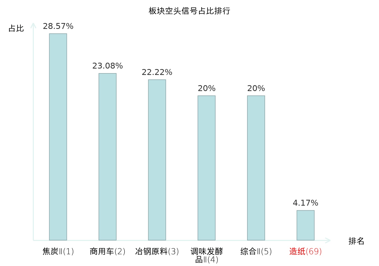 从主力宝信号数据分析,青山纸业所属的造纸板块中共1只股票发出主力空头信号,主力空头信号占比在全行业中排名第69位,较昨日下降54位;较高的排名表明主力当日卖出意愿较强,此次排名下降可能反映了主力对该板块整体卖出压力有所减弱;全市场所有行业板块中主力空头信号占比排名中,焦炭Ⅱ板块位居第一;铁路公路板块名次提升最快,较昨日上升109位;这些变动揭示了不同行业间主力资金行为的差异,为投资者评估市场风险分布和潜在结构性变化提供了客观依据。