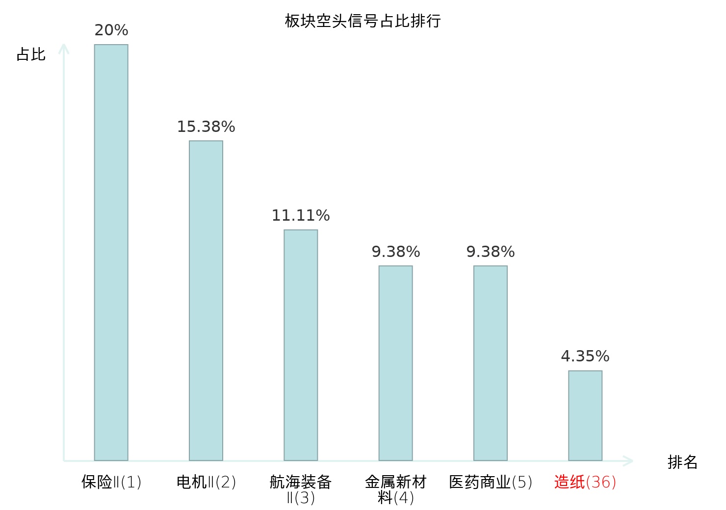 从主力宝信号数据分析,青山纸业所属的造纸板块中共1只股票发出主力空头信号,主力空头信号占比在全行业中排名第36位,较昨日上升63位。排名越高说明主力当日卖出意愿越强。全市场所有行业板块中主力空头信号占比排名中,保险Ⅱ板块位居第一;塑料板块名次提升最快,较昨日上升111位。这些变动揭示了不同行业间主力资金偏好的变化,为投资者提供了观察市场情绪和潜在投资机会的重要参考。