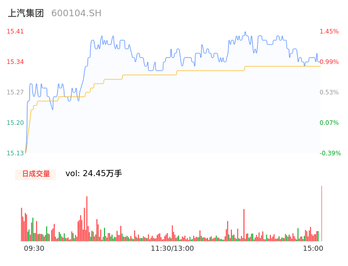 04月18日,上汽集团收报15.36,股价涨幅1.12%,成交金额3.76亿元,换手率0.21%。