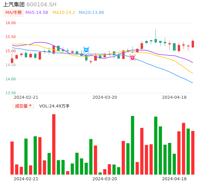 值得注意的是:2024年04月东吴证券的黄细里/孟璐分析师,首次发布关于上汽集团的研究报告,标题为:上汽集团(600104):3月批发环比+83% 上汽通用产销恢复正常。