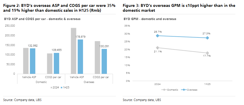 在中国各汽车制造商中,瑞银观察到不同的海外扩张策略: