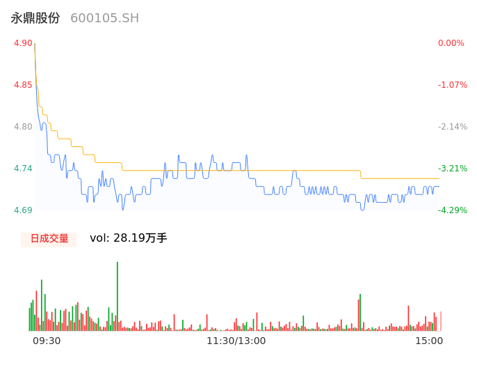 04月03日,永鼎股份收报4.72,股价涨幅-3.67%,成交金额1.33亿元,换手率2.02%。