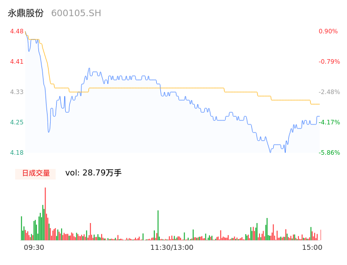 04月15日,永鼎股份收报4.27,股价涨幅-3.83%,成交金额1.24亿元,换手率2.07%。