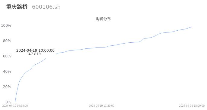 600106重庆路桥2024年04月19日成交39.06万手,成交金额2.27亿元,相较昨日放量15.02万手,换手率2.94%,成交清淡。