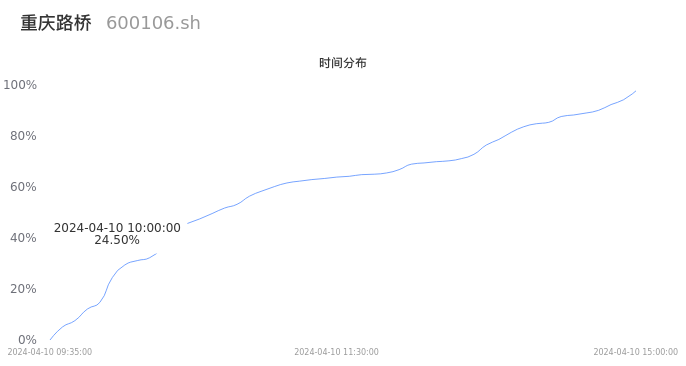 600106重庆路桥2024年04月10日成交46.10万手,成交金额2.80亿元,相较昨日放量14.12万手,换手率3.47%,成交清淡。