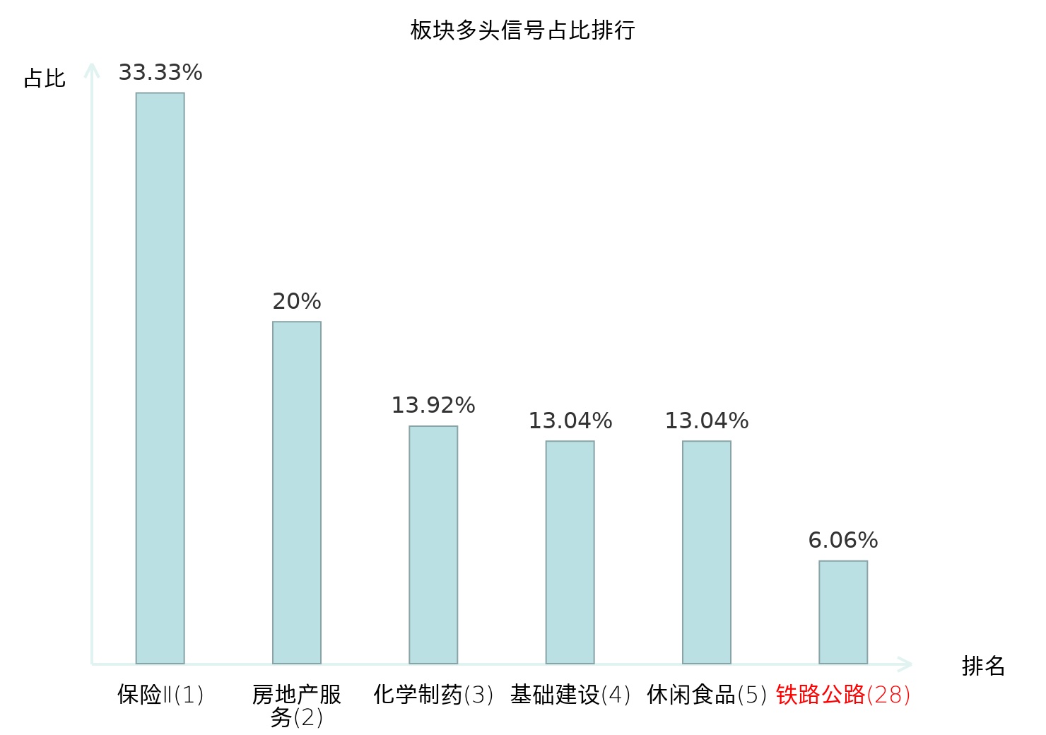 全市场所有行业板块中主力多头信号占比排名中,保险Ⅱ板块位居第一。保险Ⅱ板块名次提升最快,较昨日上升123位。