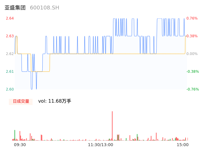 04月26日,亚盛集团收报2.63,股价涨幅0.38%,成交金额3066.60万元,换手率0.60%。