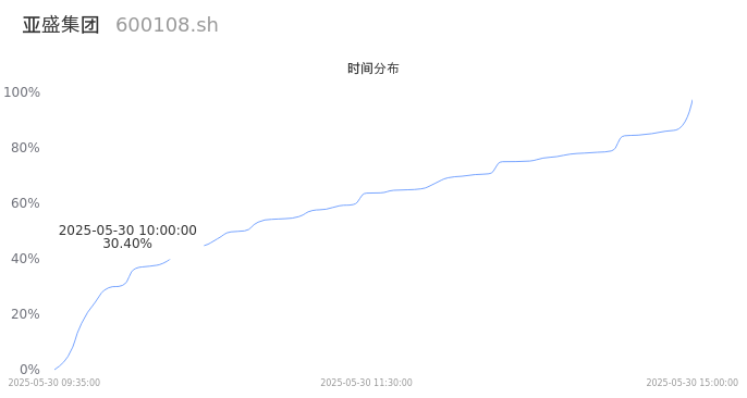 600108亚盛集团2025年05月30日成交20.84万手,成交金额6077.95万,相较昨日缩量9.84万手,换手率1.07%,成交清淡。