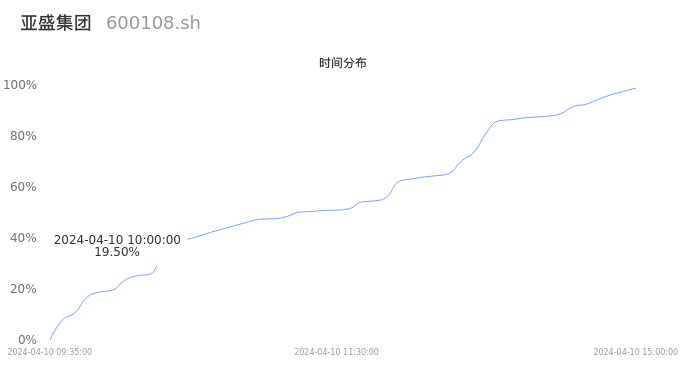600108亚盛集团2024年04月10日成交18.91万手,成交金额5230.82万元,相较昨日放量2621手,换手率0.97%,成交清淡。