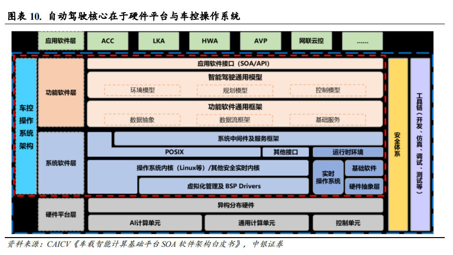 软法和软件层面,无论是底层软件的开发和适配还是上层的应用以及自动驾驶算法都将孕育诸多机会。