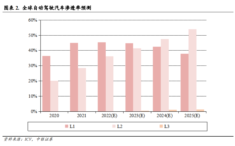 作为产业先导,特斯拉2023年底有望实现L4-L5级自动驾驶,产业链有望步入高阶自动驾驶阶段。