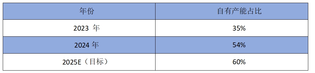 这种“自建+合作”的产能布局,背后是自有产能占比的跨越式提升——从2023 年的35%,到2024年跃升至54%,2025年更是剑指60%的目标。自有产能的回归,不仅意味着对生产环节的绝对掌控,更让成本控制有了坚实底气,彻底摆脱对外部代工的过度依赖,打破成本被动受制于人的局面。