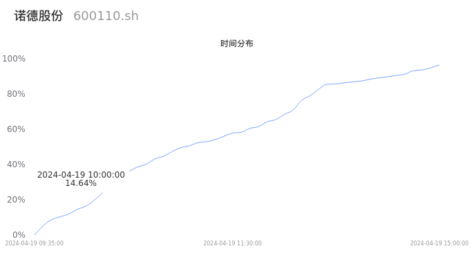 600110诺德股份2024年04月19日成交23.08万手,成交金额9564.15万元,相较昨日放量4.76万手,换手率1.32%,成交清淡。