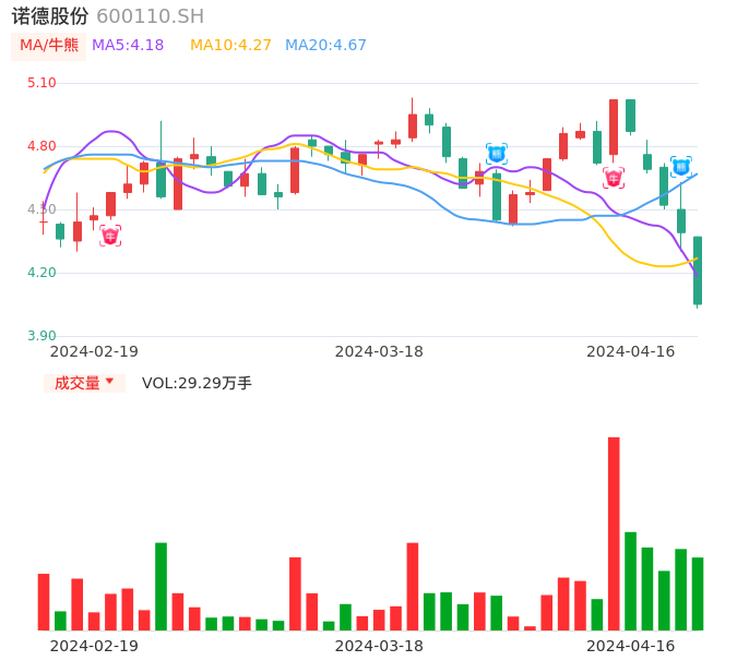 04月16日,诺德股份收报4.05,股价涨幅-7.74%,成交金额1.21亿元,换手率1.68%。