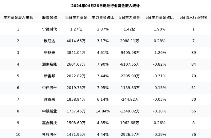 从主力资金流向来看,电池行业今日主力资金流入77.51亿元,在所有申万二级行业中排名:74/131。