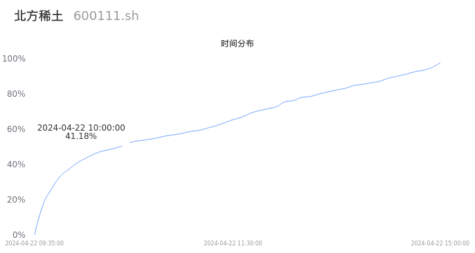 600111北方稀土2024年04月22日成交28.68万手,成交金额5.76亿元,相较昨日缩量7.18万手,换手率0.79%,成交清淡。