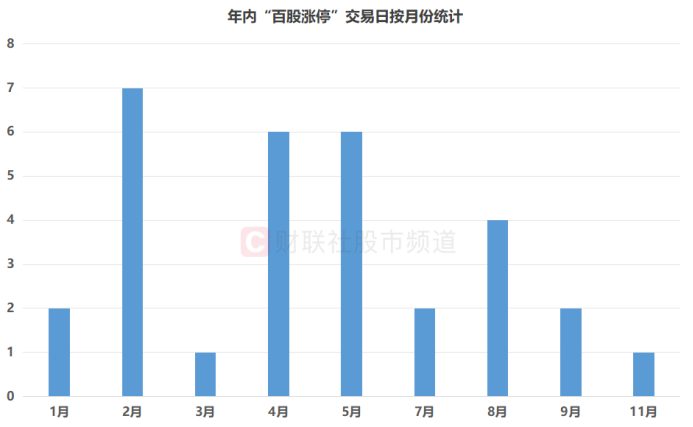 注:年内“百股涨停”交易日按月份统计(截至11月13日收盘)