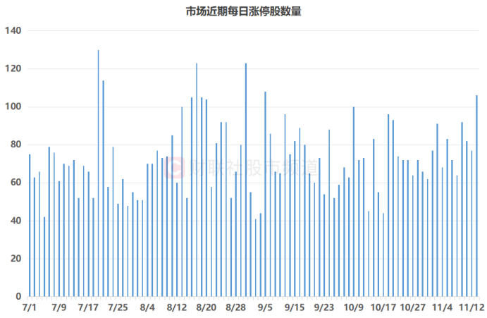 注:市场近期每日涨停股数量(截至11月13日收盘)