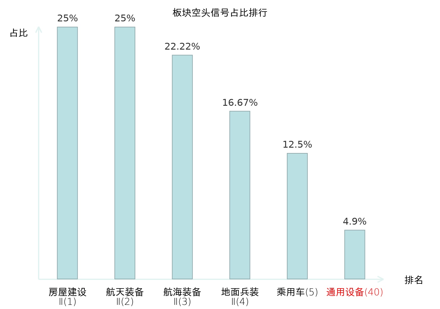 全市场所有行业板块中主力空头信号占比排名中,房屋建设Ⅱ板块位居第一。食品加工板块名次提升最快,较昨日上升110位。