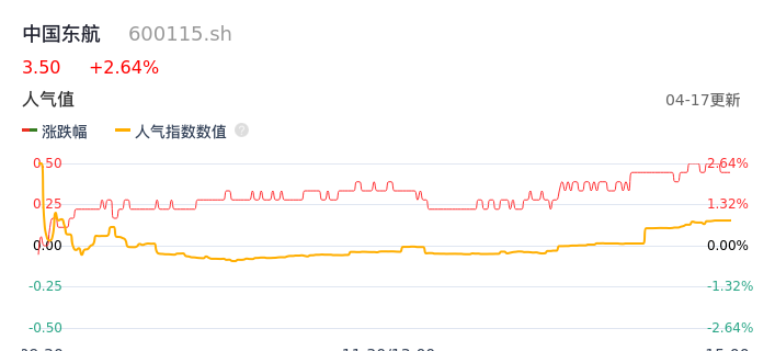 04月17日,中国东航收报3.50,股价涨幅2.64%,成交金额2.17亿元,换手率0.47%。