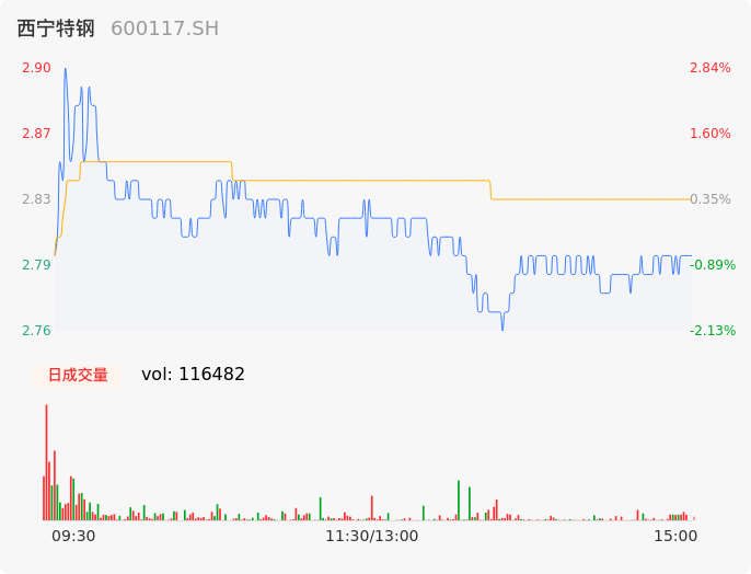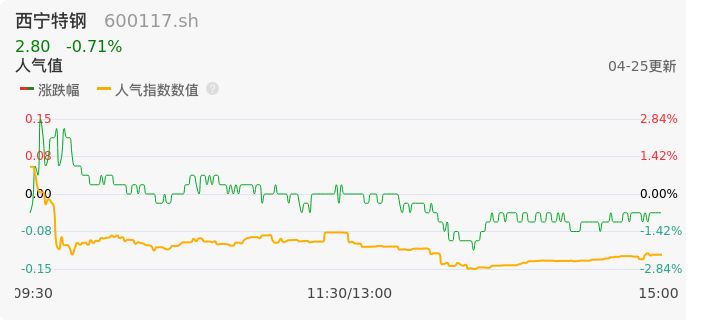 04月25日,西宁特钢收报2.80,股价涨幅-0.71%,成交金额3294.43万元,换手率1.11%。