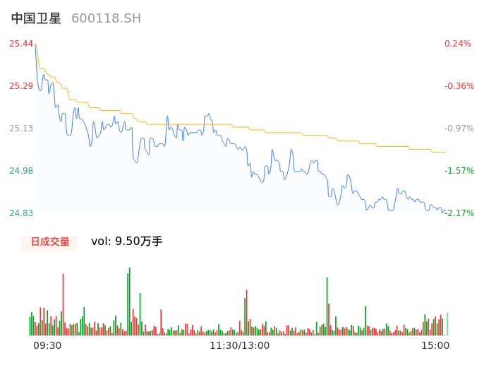 04月08日,中国卫星收报24.83,股价涨幅-2.17%,成交金额2.38亿元,换手率0.80%。