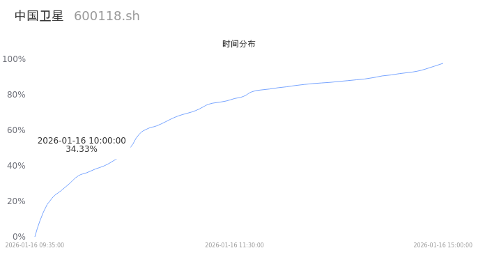600118中国卫星2026年01月16日成交147.71万手,成交金额152.30亿,相较昨日放量62.47万手,换手率12.49%,成交活跃。