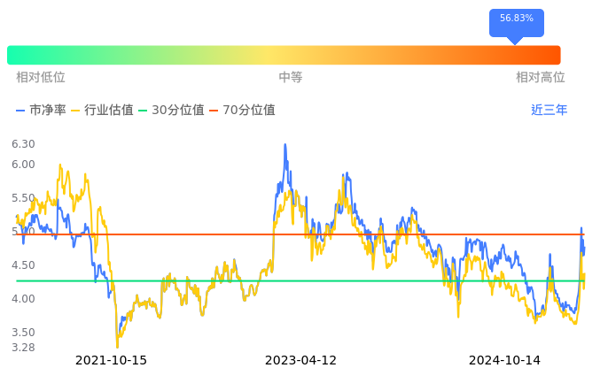 2024年10月14日,中国卫星上涨2.95%收于25.51,今日成交金额5.03亿。下文将从市盈率PETTM、市净率PB、市现率3个角度去分析公司估值情况。