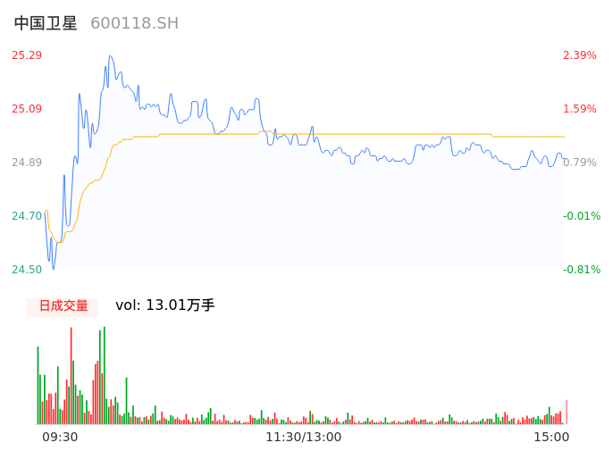 04月22日,中国卫星收报24.93,股价涨幅0.93%,成交金额3.25亿元,换手率1.10%。