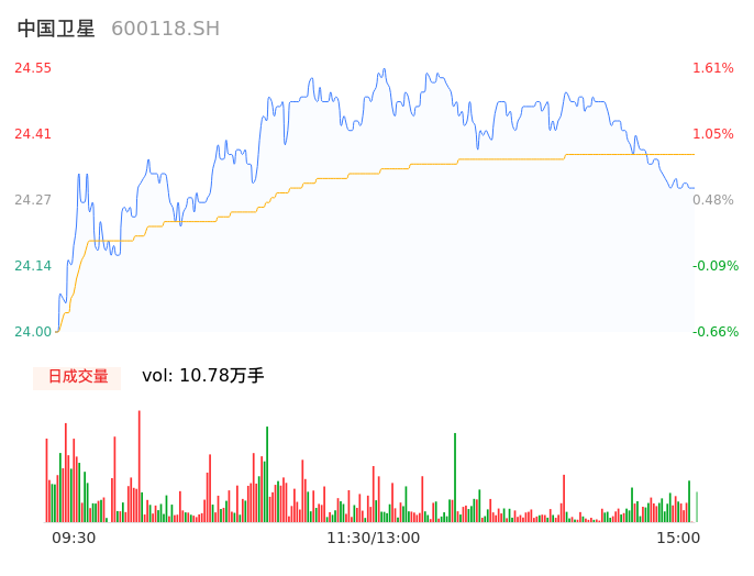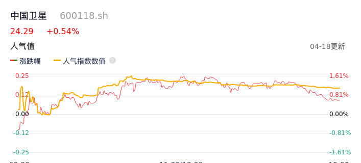 04月18日,中国卫星收报24.29,股价涨幅0.54%,成交金额2.63亿元,换手率0.91%。