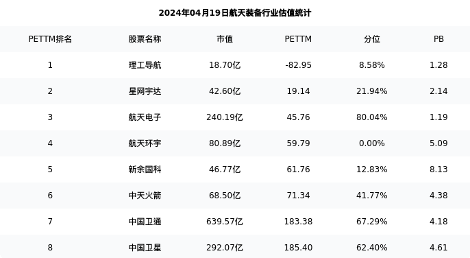 从估值角度看:中国卫星最新市盈率PETTM为185.40,在行业内排名7/8,处于62.40分位。