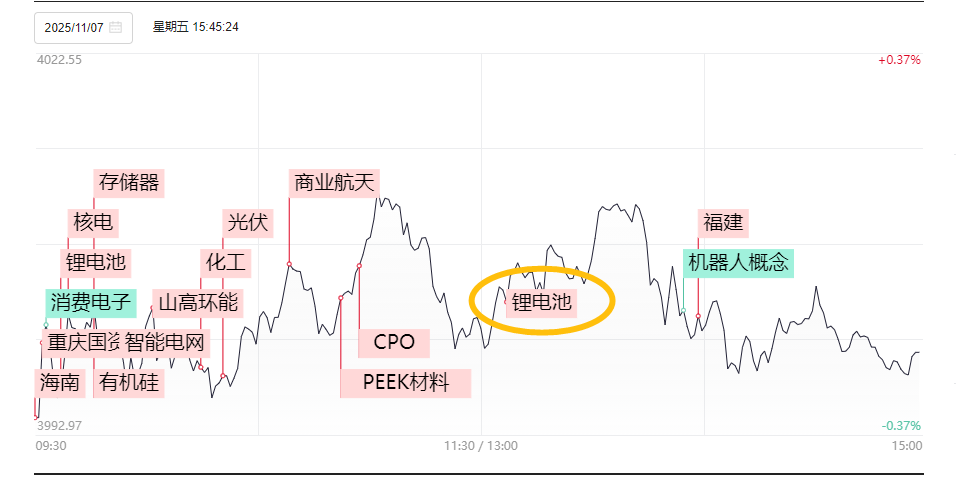 全天涨幅榜上霸榜的题材依旧是新能源上游的金属资源化工细分方向,下午一上来资金往锂电池方向的锂资源个股发力,多股涨停上板。其中丰元股份、永太科技、天赐材料、大中矿业、盛新锂能等纷纷涨停,日内锂电方向十余股涨停,直接又再次高潮。券商研报分析10月电池排产进一步提升10%,旺季再上台阶,预计11月排产仍小幅提升,高景气度延续,其中储能需求超预期,价格已上涨1~3分/wh,预计第四季度仍有提升空间。整体来看在科技算力方向今年涨幅较大的情况下,整个新能源产业链受益政策导向和技术变革、供需关系的影响,新能源上游资源细分板块短期波动与长期机遇并存,只要相关方向没有出现批量的中军个股大阴线的情况下,不直接看空,持筹者和场外打算入场的朋友,都必须做好机会的跟踪,不再大涨高潮的时候追涨,多在震荡分歧的时候低吸。