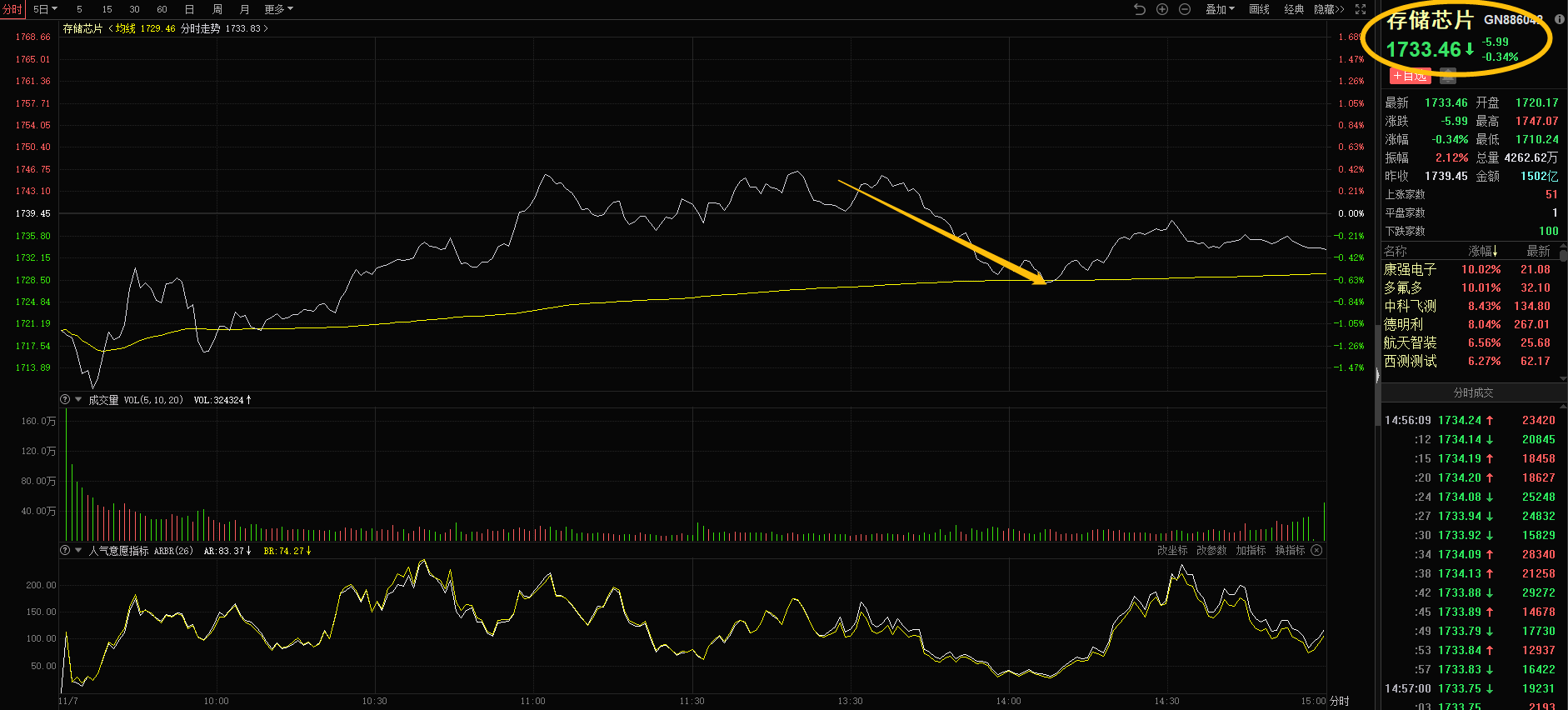 而今天下午跳水的2个重要的科技方向,一个是机器人、一个是存储芯片。机器人比较坑,昨天大涨,今天大跌,晋级的就一个方正电机。小鹏的机器人和特斯拉的股东大会没能激起机器人的情绪。存储芯片上午还一度有转强的趋势,下午这边最先跳水的就是它,香农芯创直接回落近半的涨幅,带动不少存储的个股回落,2板的德明利都开板了,新高的时空科技也涨停开板跳水。存储板块最近的分化已经很严重,高位的热门的趋势有些还在冲,中低位的基本都滞涨甚至下跌了。消息面存储涨价依旧,但是目前市场量能有限,既要又要太难了。存储行情短期看香农芯创的走势,存储因它起势,今天回调也是因它下行导致。所以周末要关注存储方向的消息动向。