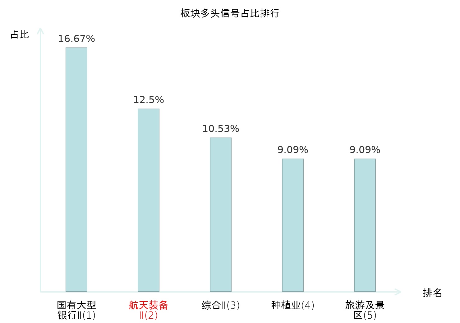 全市场所有行业板块中主力多头信号占比排名中,国有大型银行Ⅱ板块位居第一。国有大型银行Ⅱ板块名次提升最快,较昨日上升123位。
