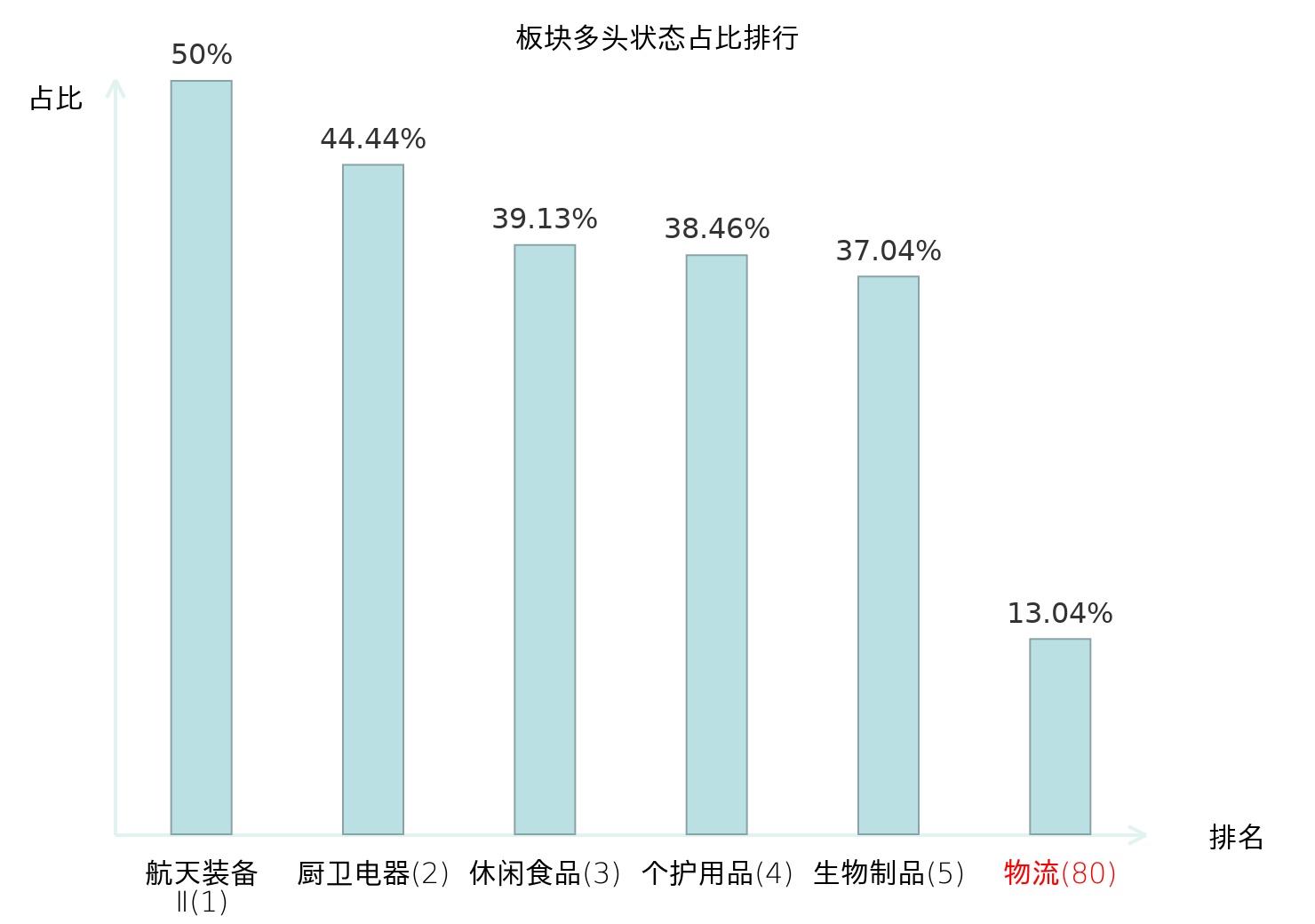 全市场所有行业板块中主力多头状态占比排名中,航天装备Ⅱ板块位居第一。小金属板块名次提升最快,较昨日上升53位。