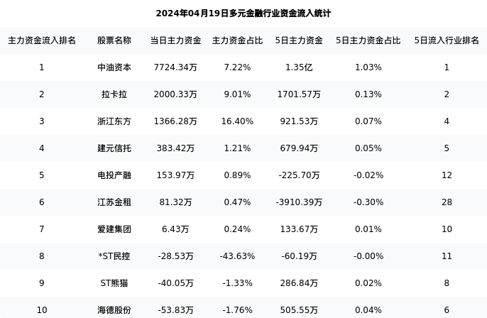 从主力资金流向来看,多元金融行业今日主力资金流入14.35亿元,在所有申万二级行业中排名:77/131。