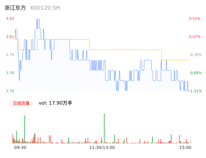 04月22日,浙江东方收报3.76,股价涨幅-1.31%,成交金额6785.65万元,换手率0.52%。