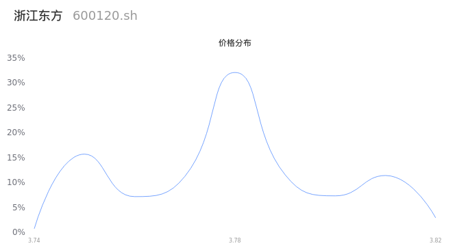 然后我们来看下当日成交的价格分布。经过分析发现,该股票当日成交价格波动低于10个最小波动价位,由于可以参考的样本量非常少,价格分布分析的结果不具有指导意义,下图仅供参考。