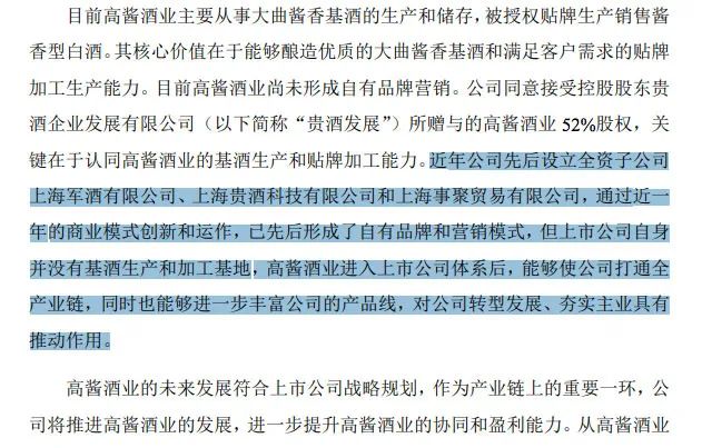 不过,就高酿酒业部分股权注入,监管部门向公司下发了问询函,要求公司对高酱酒业其他应付款的真实性、资金用途和去向、后续是否有偿还能力、上述事项对公司的影响和相关风险等情况进行说明。ST岩石称,认同高酱酒业的基酒生产和贴牌加工能力,高酱酒业进入上市公司体系后,能够使公司打通全产业链,同时也能够进一步丰富公司的产品线,对公司转型发展、夯实主业具有推动作用。