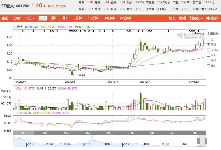ST庞大今年以来的股价表现 图片来源:东方财富