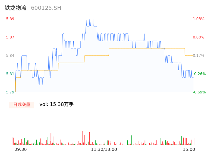 04月12日,铁龙物流收报5.81,股价涨幅-0.34%,成交金额8988.08万元,换手率1.18%。